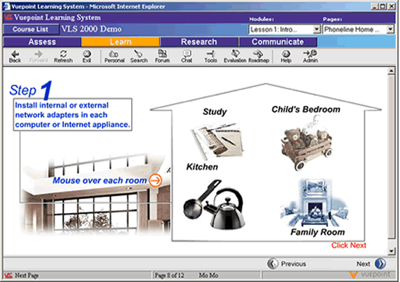 This screen becomes animated and teaches a procedure step-by-step in the actual lesson.