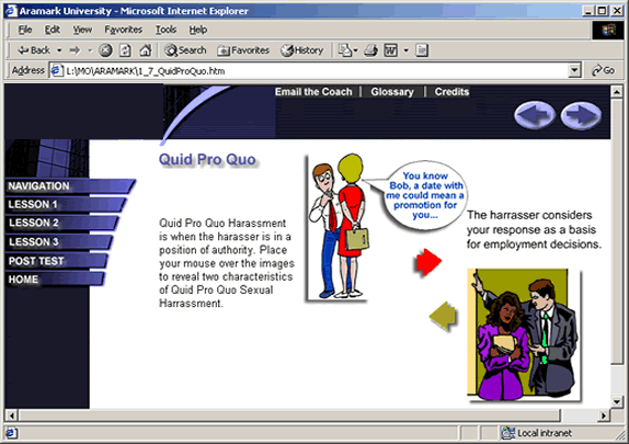 In the actual lesson, the learner mouses over the examples to learn the concepts.